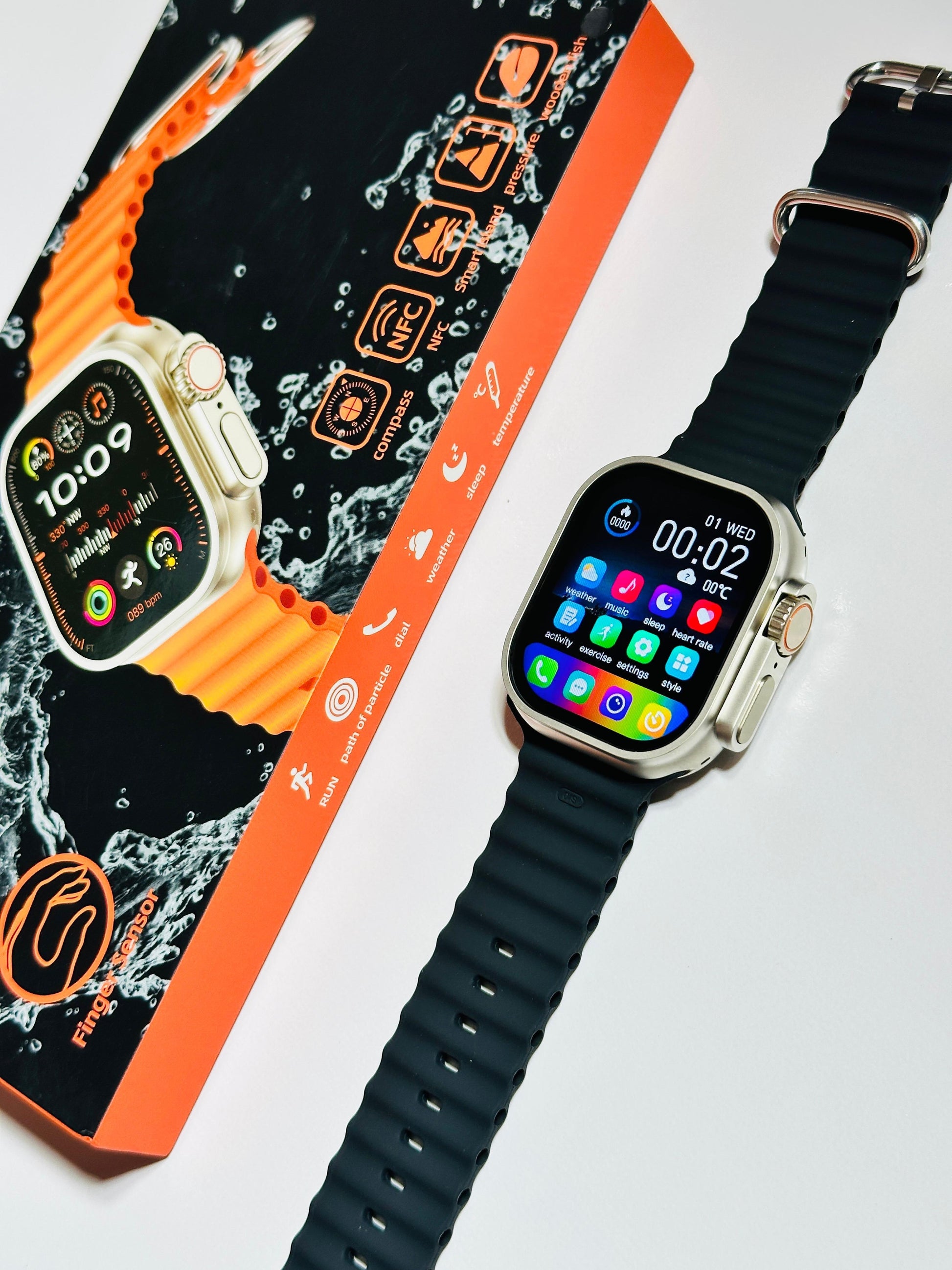 Function: Fitness Tracker, Heart Rate Monitor, GPS, Call Rejection, Alarm Clock, SOS, NFC for comprehensive health and utility features